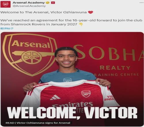 官方:阿森纳宣布和沙姆洛克流浪者就维克托-奥日安武纳的转会达成了协议,这名16岁的新星将在2027年1月份年满18周岁后正式登陆北伦敦。