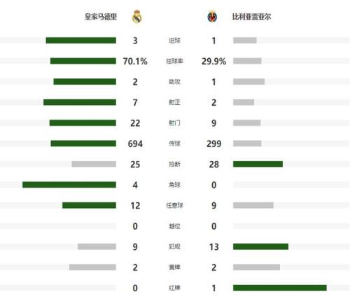 易边再战,皇马带球入场,第47分钟维尼修斯左路底线附近拿球,强行带球内切杀到禁区后打门,皮球打在防守球员脚上折射入网,帮助皇马在主场取得了1-0的领先,第62分钟比利亚雷尔获得了一次反击的机会,佩佩右路杀入皇马腹地,面对出击的库尔图瓦,直接横传门前,可惜两名包抄的队友都没有碰到皮球。