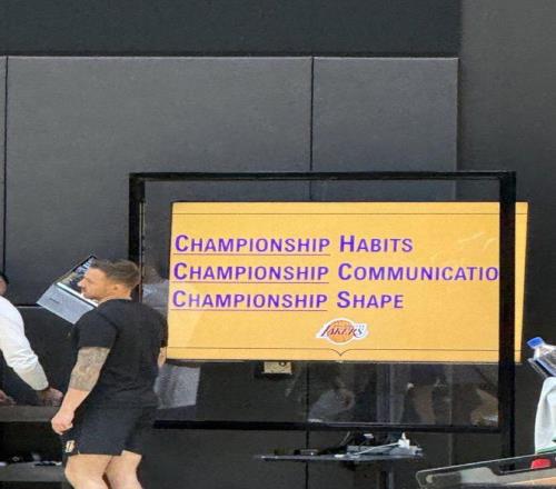 雷速体育10月5日宣 湖人队在位于埃尔塞贡多的UCLA健康训练中心展示了他们的新赛季口号,“Everything is built for a championship run”(一切为冲击总冠军而建)被悬挂在训练馆显眼位置,明确传递出球队在2025-26赛季的雄心壮志。
