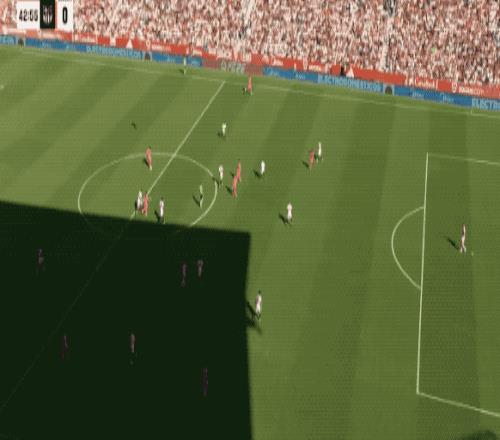 第22分钟,塞维利亚在巴萨半场连续传球,门迪后点的射门稍稍偏出。
