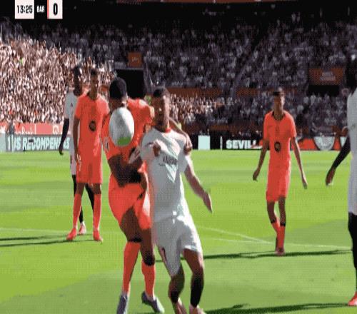 下半场开始,塞维利亚继续扰乱巴萨的防线,什琴斯尼再次贡献神扑,塞维利亚投诉巴尔德手球,VAR和裁判都认定没有点球。