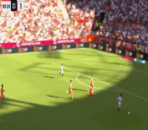 第89分钟,塞维利亚快速反击,卡尔莫纳突入禁区右脚低射破门,3比1!