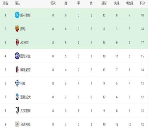 本场过后,尤文在意甲已经连续5轮不胜,排名跌到第8位。赛季初,尤文一度是意甲表现最好的球队之一,前3轮过后,他们全取9分并列榜首,特别是在主场4-3击败国米之后,尤文被不少人视为夺冠热门。没想到的是,之后5场比赛,尤文3平2负未尝胜绩,他们在争冠大战中已经开始掉队。截至目前,尤文已经落后榜首的那不勒斯6分,如果不尽快找回状态,相信尤文的排名还会继续下滑,到时候他们连争四都会出现问题。