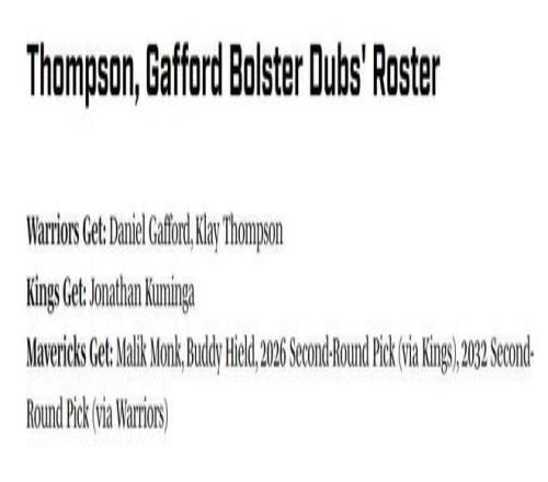 在这种情况下,美媒《SI》结合勇士队实际需求,以及目前曝出的各类消息,晒出一笔符合各队需求的潜在3方交易方案,具体方案如下: